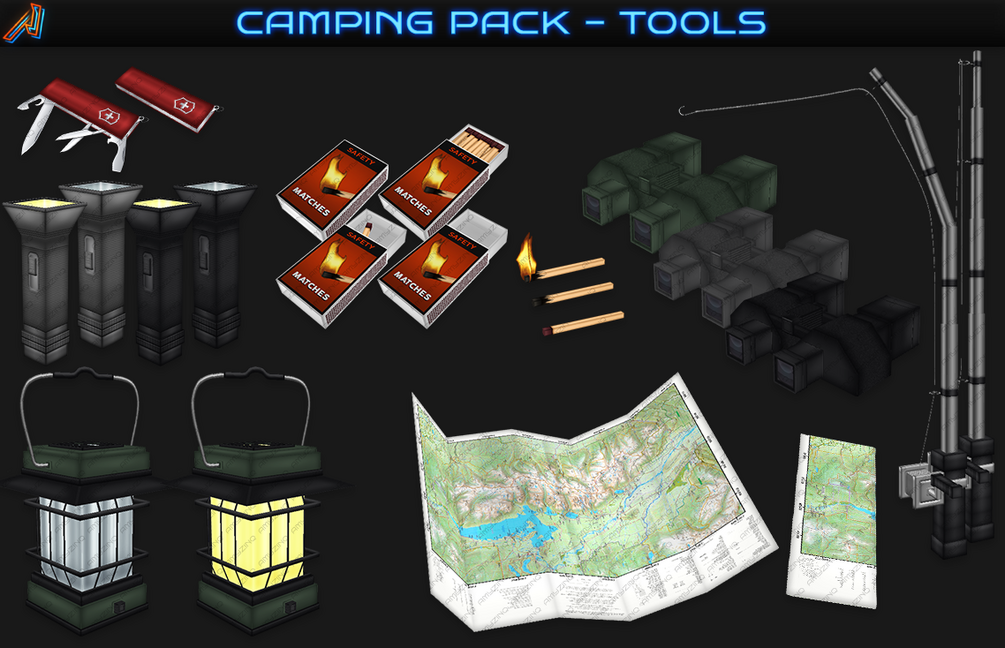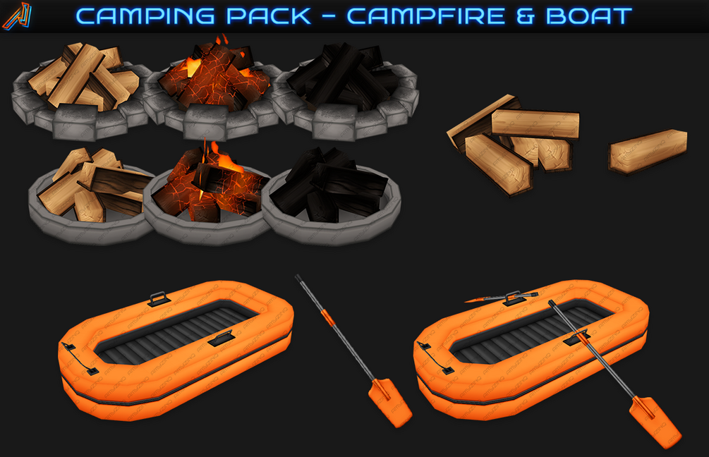 - Campfire and Firepit, Match comes in Unlit, Lit, Lit (Glowing / Emissive), Burnt variant.