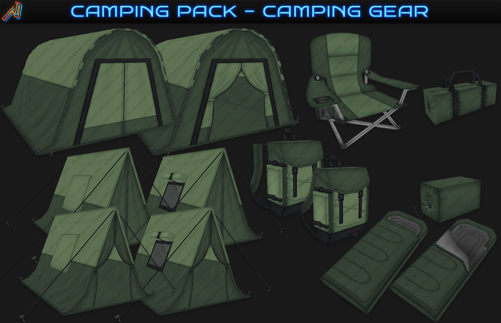 - Single Tent, Two Tent, Tentbag, Sleepingbag, Campingchair, Backpack: 9 colors. [Beige, Black, Blue, Brown, Camo, Green, Purple, Red, Yellow]