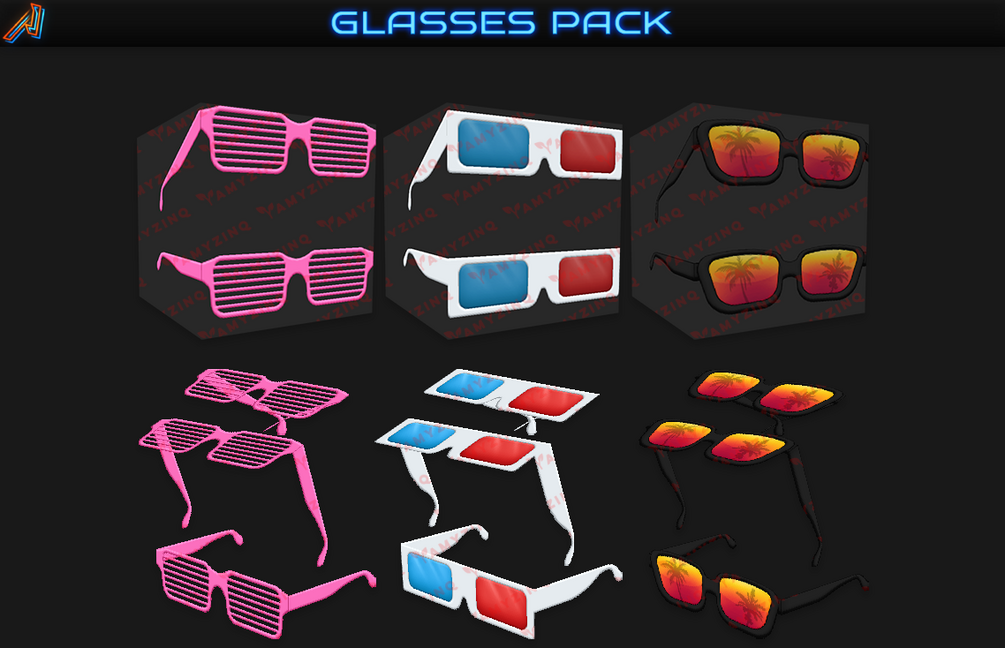 TAGS: Glasses, Sunglasses, Tropical, Sun, Palm, Shades, Spectacles, 3D, Blinds, Chanel, Pineapple, Flamingo, Heart, Flower, Flowers, Hearts, Flamingos, Pineapples, Beach, Sunny, Sun, Pool, Accessories, Headwear, Head, Face, CIT, Texturepack, Resourcepack, 3D Model,